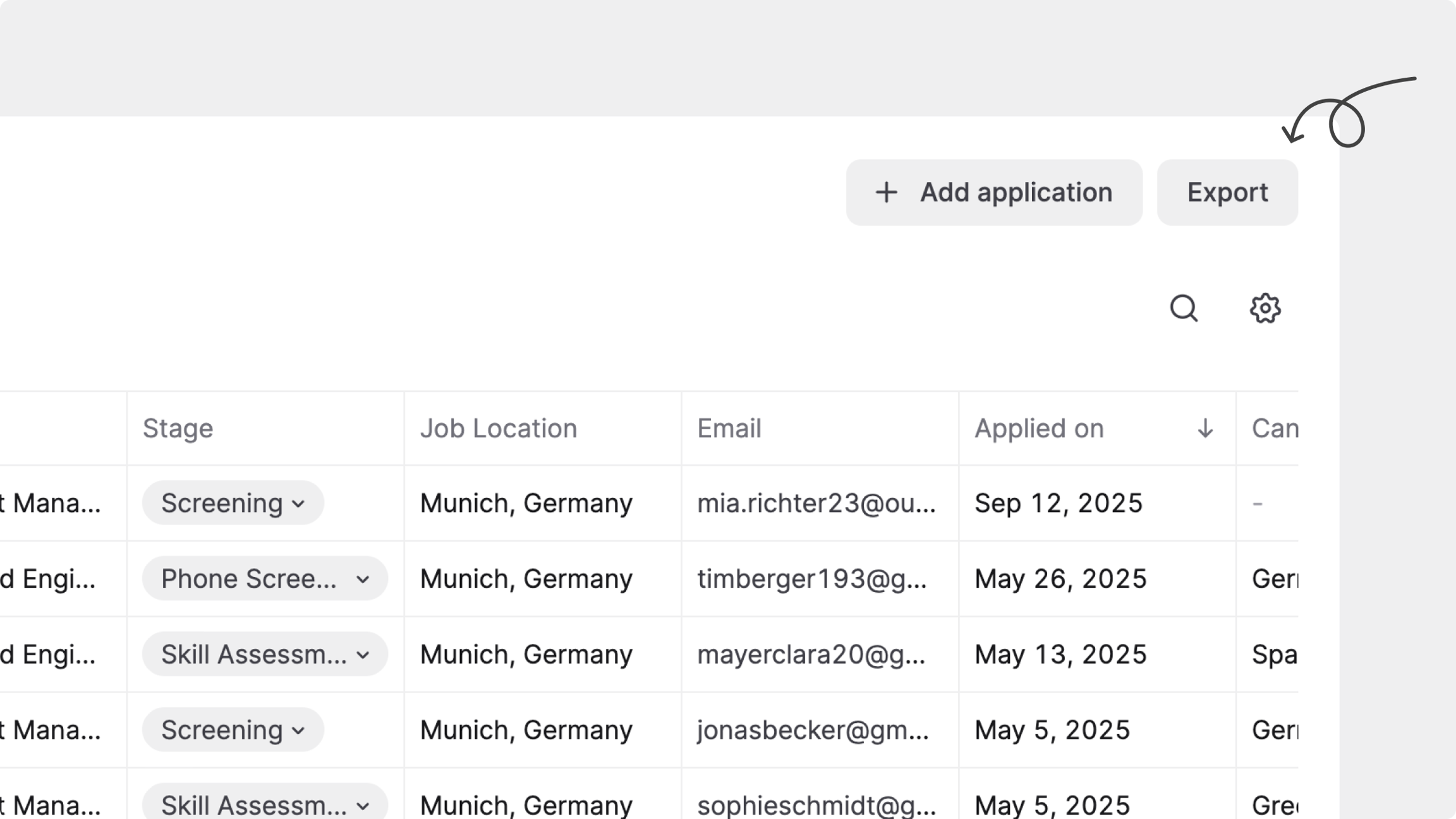 Dans cet article, vous apprendrez à exporter des listes de candidats et des documents depuis l’onglet Candidatures ou directement depuis des vues spécifiques d’un Job.