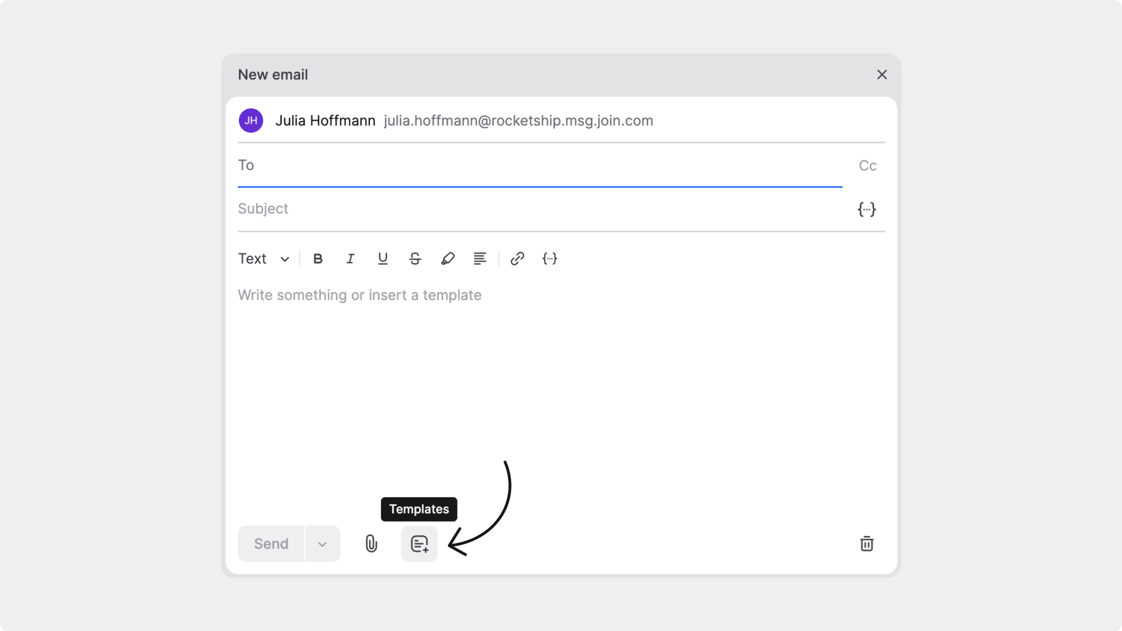 Chaque fois que vous rédigez un e-mail dans JOIN, qu’il s’agisse d’un nouvel e-mail, d’une réponse ou d’un transfert, vous pouvez rapidement insérer un modèle.