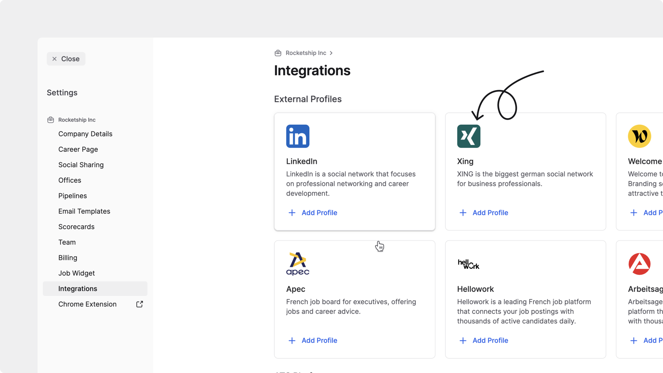 Configurez votre intégration XING dans JOIN pour activer les publications organiques et premium.