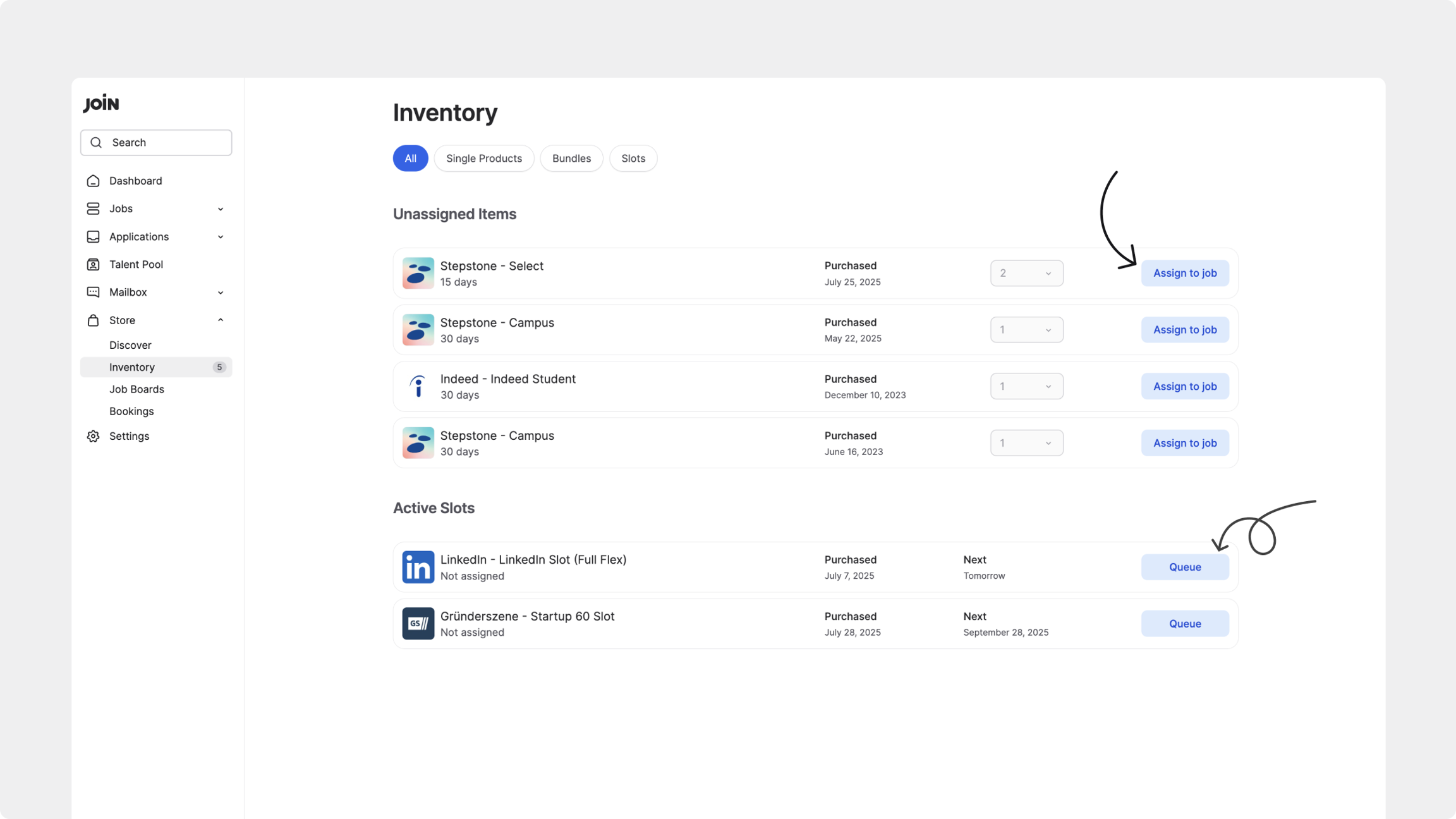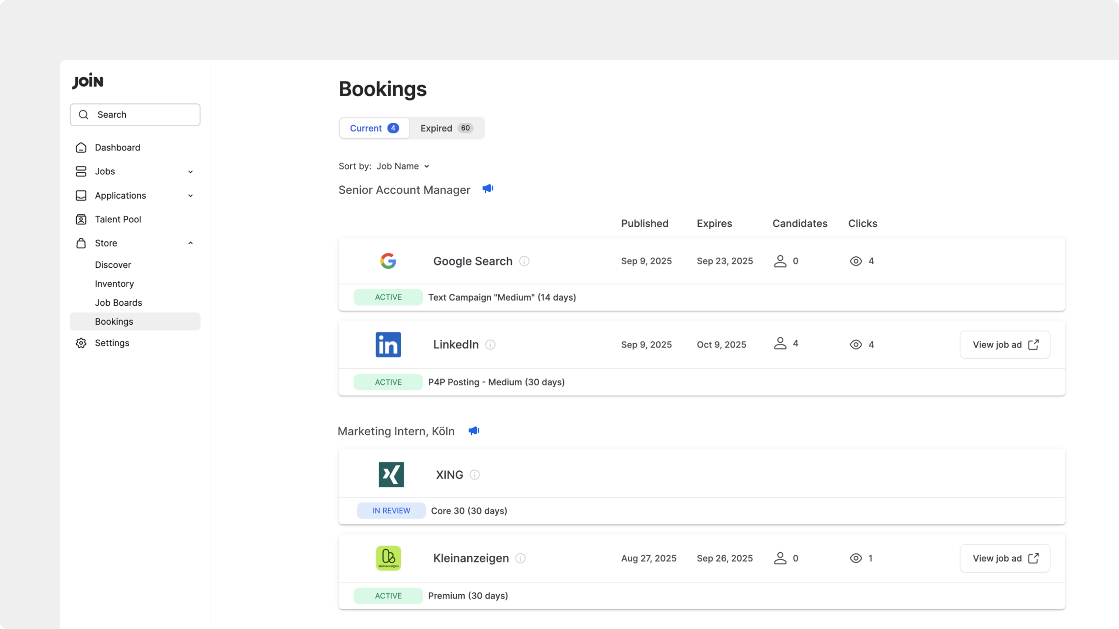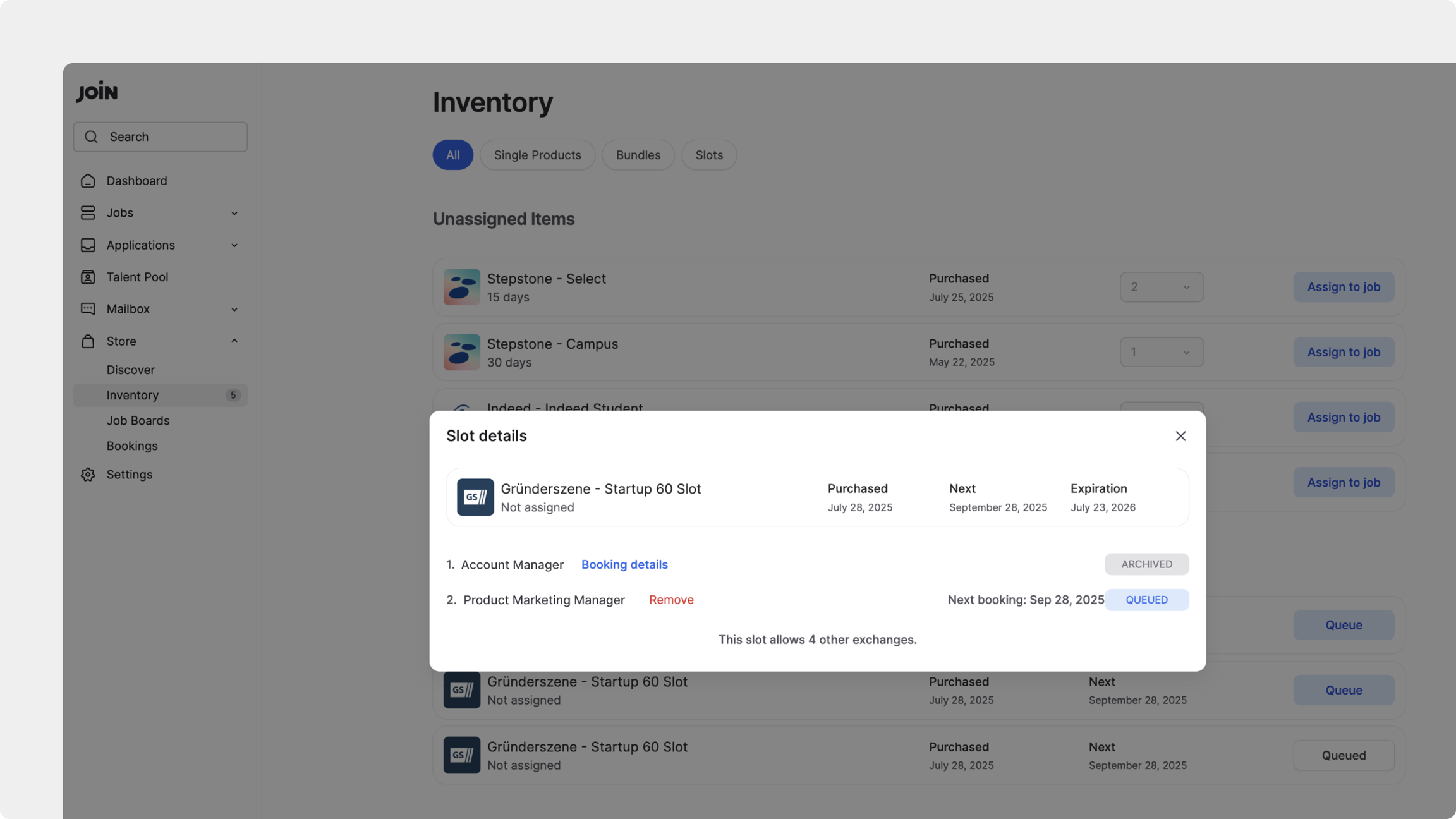 Toutes les Candidatures reviennent ensuite dans JOIN comme d’habitude, où vous pouvez les gérer dans votre pipeline. Vous pouvez suivre toutes les réservations actives directement dans la Boutique.