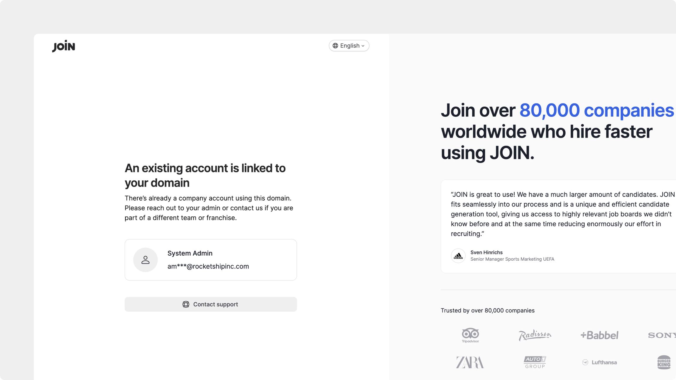 Gehen Sie zu join.com/auth/signup/company.
